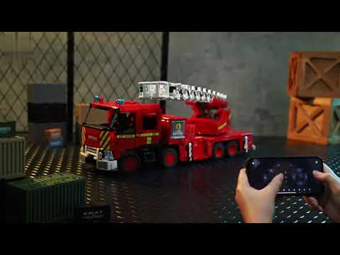 - 【Dual Support】This remote-controlled fire ladder truck block model also supports both mobile APP Bluetooth remote control (30-meter range) and physical remote control modes. The 2.4GHz remote control is highly responsive and can accurately control four-wheel steering, headlight remote control, and other operations. The quick-release battery design ensures it's always ready to use, allowing children and adults to enjoy the driving experience.