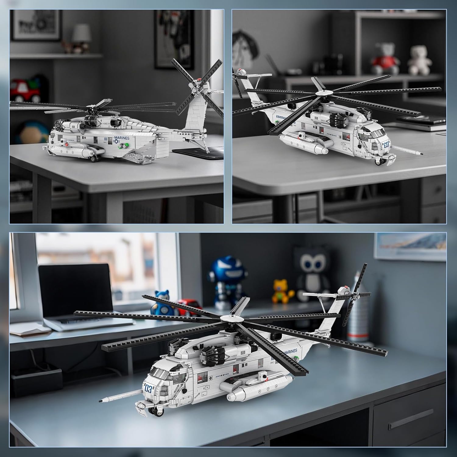 - 【Perfect Design】This helicopter set meticulously replicates the exterior and intricate internal details of the CH-53 helicopter, featuring 2,248 building blocks. The realistic cockpit, fuselage, propeller, and retractable landing gear add captivating detail to this military toy.