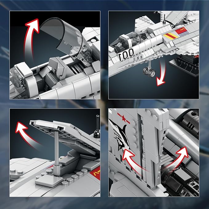 - 【Realistic J-15 Flying Shark Design and Carrier Functionality】Build a highly detailed J-15 fighter jet model with realistic carrier details, including folding wings for deck operations, retractable landing gear, and an openable cockpit. This military fighter jet set also includes a variety of missile types, adding an extra layer of realism and excitement to your naval aviation experience. Perfect for collectors and aviation enthusiasts seeking authenticity.