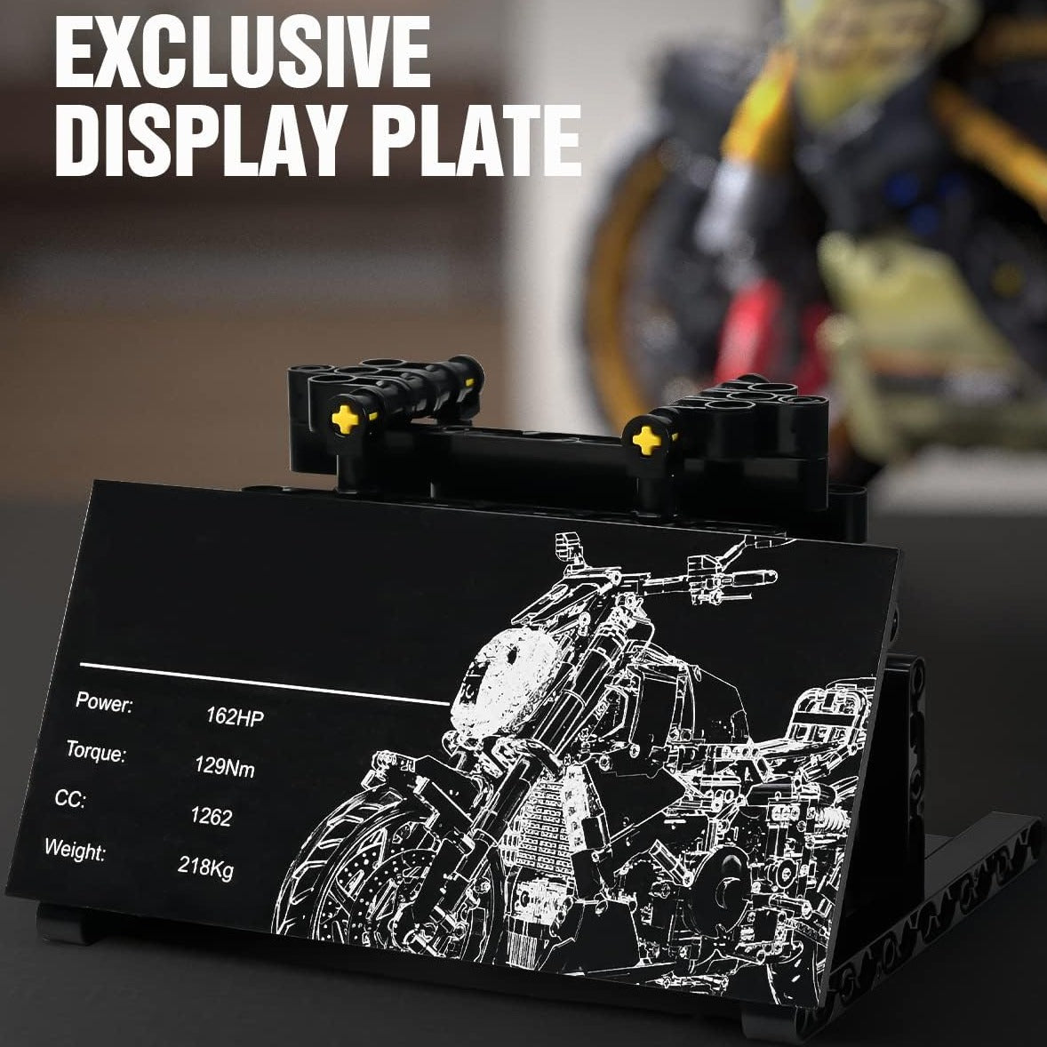 - This premium 2025 piece model measures 20.5" L x 5" W x H x 10.5" (dimensions do not include display stand) and comes packaged in a deluxe box , comes with detailed instructions and parts in numbered bags. The perfect gift for all motorcycle fans and future engineers.