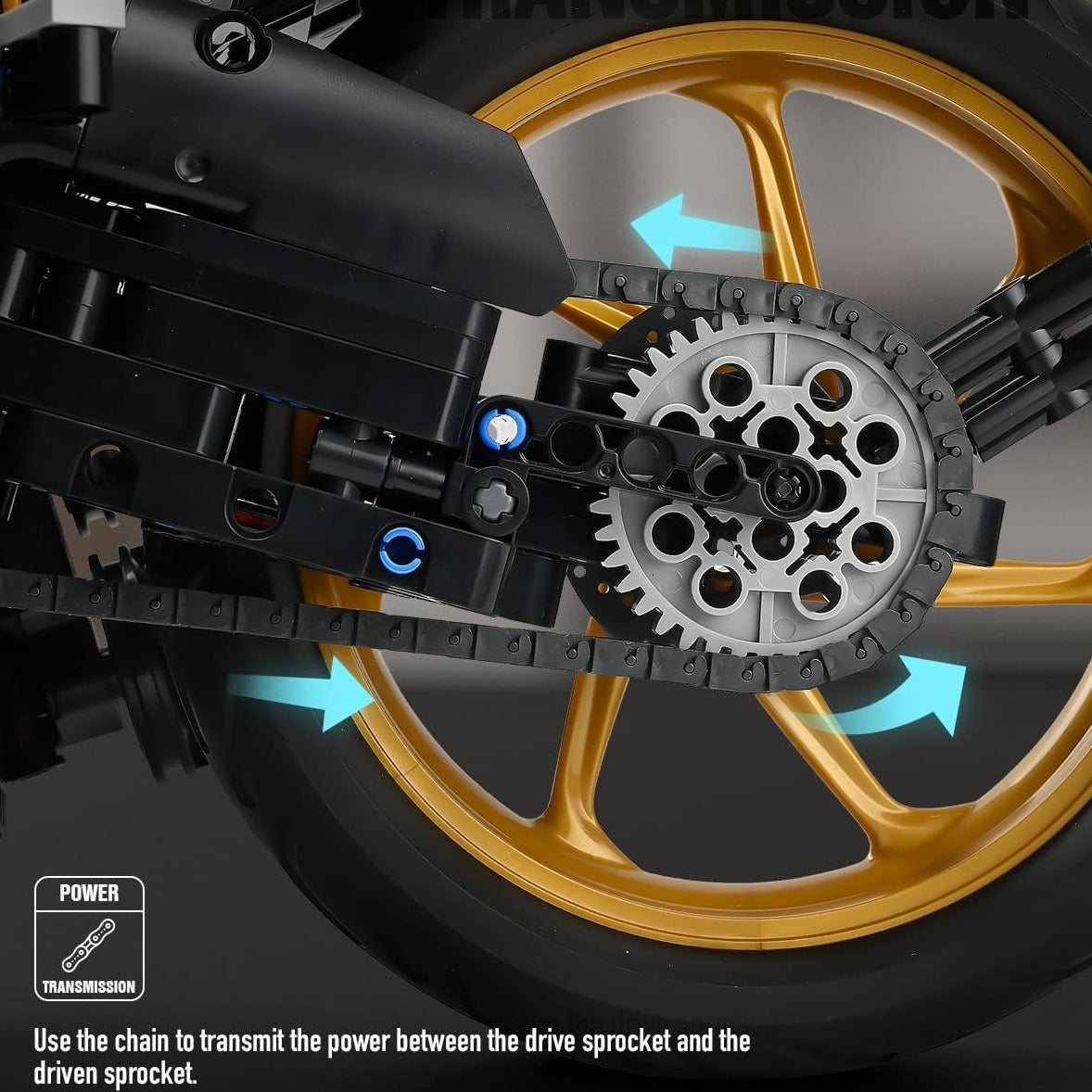- Discover a project filled with detail when you build a replica of a large model. Explore features like a 3-speed gearbox, disc brakes, front forks and rear shocks, and functional steering to get the thrill of seeing how a motorcycle works. This sophisticated buildable motorcycle model is designed to provide adults and teens with an immersive building challenge to help develop hands-on skills and creative thinking.