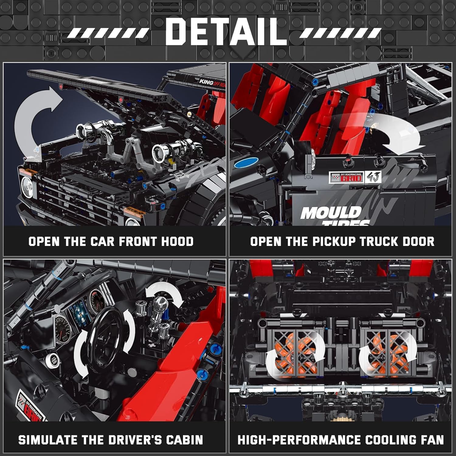 For car enthusiasts, car building blocks are not only an interesting toy, also a great tool for learning how cars work. By building and observing the operation of the blocks model, more intuitively understand the various parts of the off-road pickup truck and their interactions